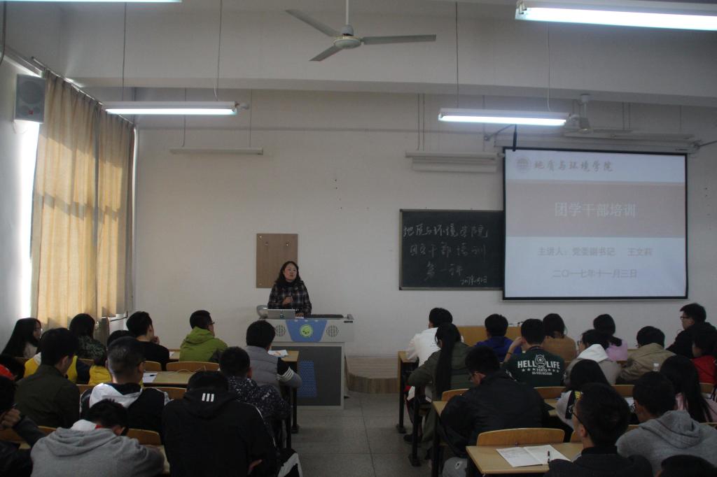 为深入贯彻学习党的十九大精神,推进“一学一做”学习教育,加强团学组织的建设,提高团学干部工作能力,近期,地环学院组织全体学工干部为团学干部开展专题培训。专题培训围绕十九大精神解读、中国传统文化传承、社会主义核心价值观培育、学生干部的先锋模范作用树立、学生干部应具有的精神等方面展开。全体团学干部课后进行了研讨交流,表示将不忘初心,加强学习,扎实开展工作,不断提高团学干部的工作实效,为学院团学工作贡献力量。