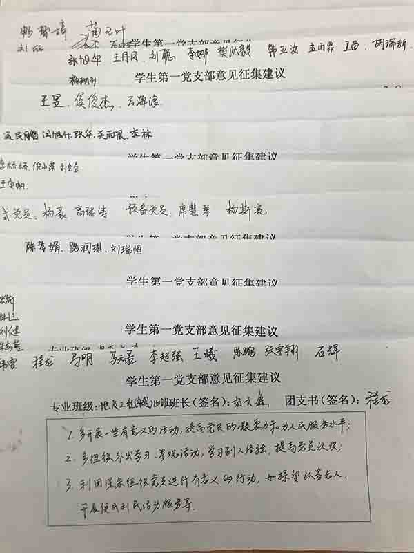 12月28日至2019年1月2日,为进一步促进党支部建设,增强党员凝聚党群力量的实际能力,学生第一党支部开展了党员谈心谈话及支部建设建议征求活动。支部书记、教师党员、学生党员相互谈心谈话,深入团支部与群众谈心谈话,了解思想状况、分享学习心得、查找各自不足;同时,以学生党员为核心,联合团支部,以团支部为单位进行了党支部建设的建议征集,共收到2015级12个团支部的意见建议,经过集中汇总,于1月2日,支部召开党员大会进行了反馈,来促进党支部建设。