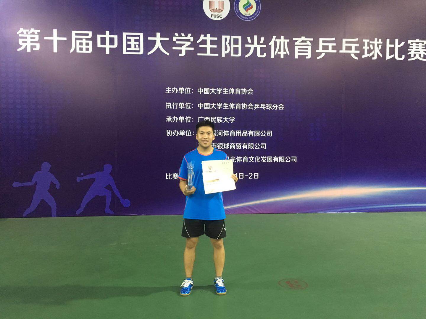 6月1日至2日,第十届中国大学生阳光体育乒乓球比赛在南宁广西民族大学举行。地质与环境学院地质工程(卓越)1601班崔铭驿、资源勘查工程1802班李诗洁作为校乒乓球校队员与来自南京大学、武汉大学、中南大学、郑州大学、东南大学等32所高校的192名运动员同台竞技。在本次比赛中,我校乒乓球校队顽强拼搏,获得混合团体亚军,创造了我校在该赛事上的历史最好成绩。崔铭驿和李诗洁获得本次比赛的优秀运动员奖。