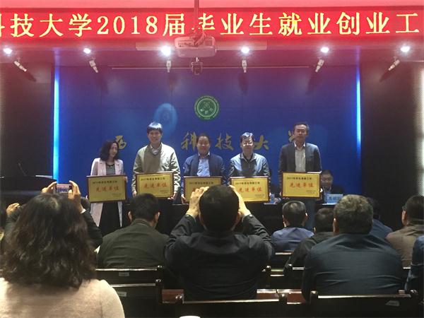 4月12日下午,西安科技大学2018届毕业生就业创业工作会在临潼校区骊山校园隆重举行,学院党委书记丁正生、院长王生全、获奖代表及2018届毕业班辅导员参加大会。会上表彰了2017年就业、考研先进集体和先进个人,我院荣获“2017年学生考研工作先进单位”和“2017年度就业工作先进单位”,我院教师慈继豪获“2017年度就业工作先进个人”,高欣获“2017年度关心学生就业先进个人”。据悉考研、就业先进集体各表彰五个学院,我院是唯一获两个集体奖的学院。