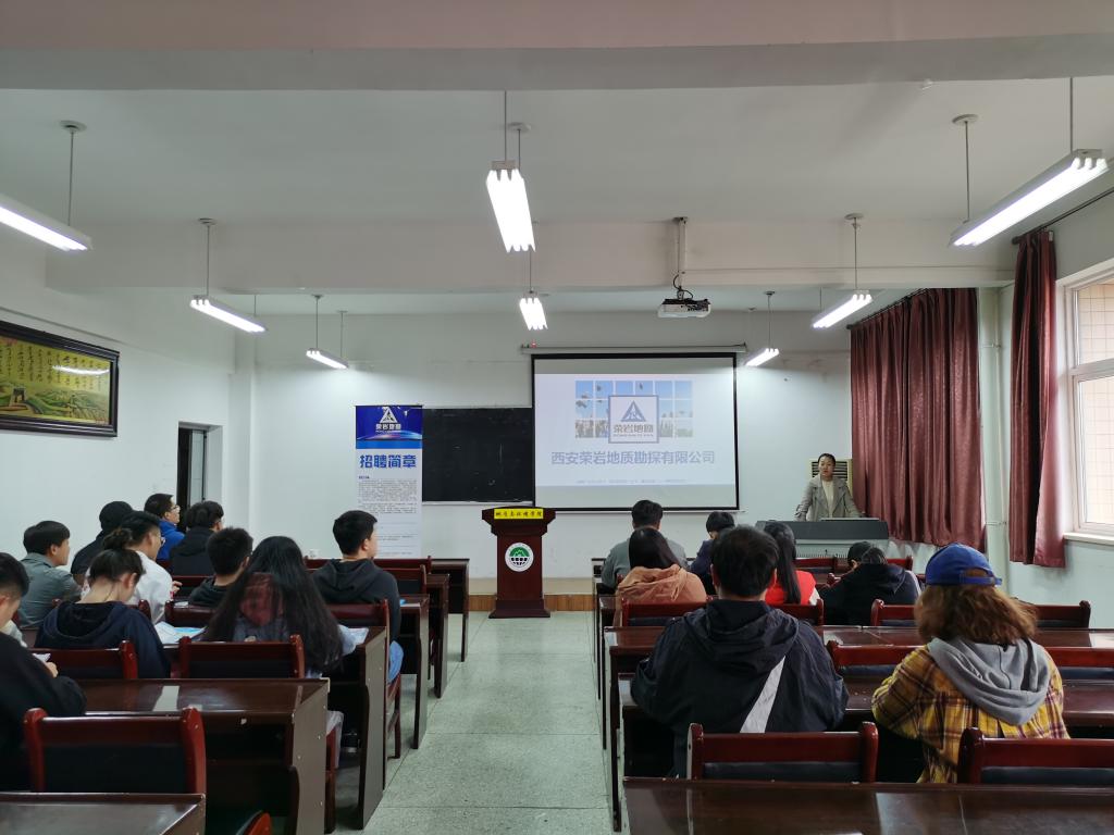 10月14日下午,西安荣岩地质勘探有限公司到临潼校区骊山校园地环学院11教322召开专场招聘会。地环学院党委副书记刘训明、2021届毕业生辅导员余小涛接待了公司招聘负责人一行,余小涛介绍了2021届毕业生情况,用人单位招聘负责人进行了宣讲,参会毕业生与用人单位进行了深入交流并积极投递简历,多人达成就业意向。
