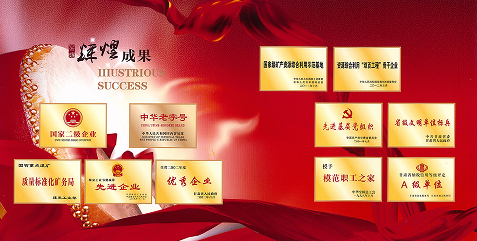 历经60余年创业发展,荣膺国家二级企业、全国煤炭工业一级企业、全国安全生产先进单位、全国节能先进企业、国内贸易部“中华老字号”企业、全国全省思想政治工作先进单位、A级纳税信用单位等称号,名列全国煤炭工业企业100强,被列为国家级矿产资源综合利用示范基地、资源综合利用“双百工程”骨干企业。