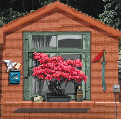 安徽省六安市霍山县诸佛庵镇丙烯壁画《窗前的杜鹃花》,中国美术学院绘画艺术学院师生集体创作。 |