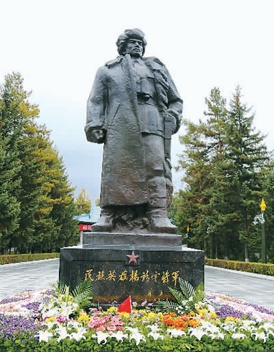 杨靖宇戎装铜像。 东北抗日联军纪念馆供图 |
