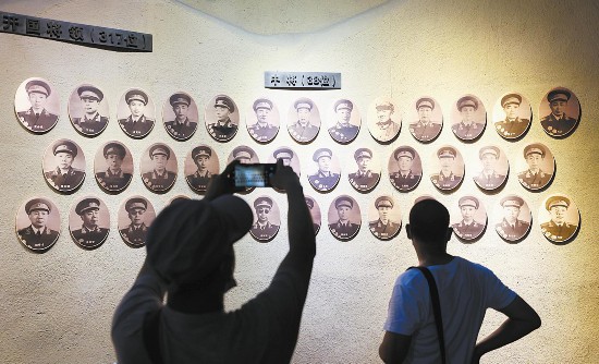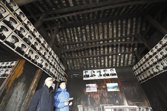 咸丰忠堡大捷临时指挥部旧址,整齐悬挂着贺龙等173位元帅、将军的照片。(湖北日报全媒记者 田悦 摄)