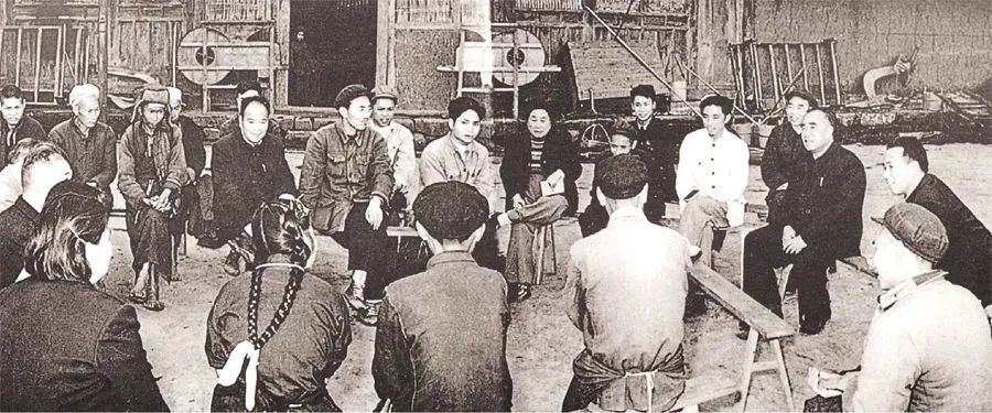 1961年4月,朱德在四川农村调研时和干部群众座谈