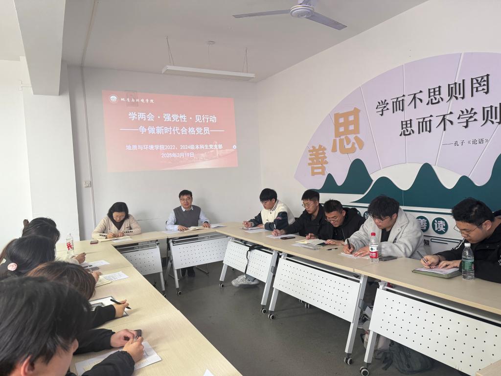 3月19日,学院2022、2024级本科生党支部在“一站式”学生社区开展“学两会•强党性•见行动——争做新时代合格党员”主题党日活动,支部全体党员参会,支部书记余小涛主持活动。