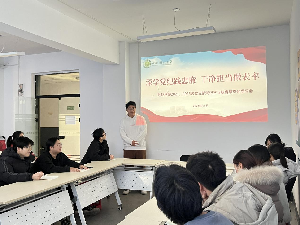 学院2021、2023级本科生党支部开展“深学党纪践忠廉,干净担当做表率”党纪学习教育常态化学习会