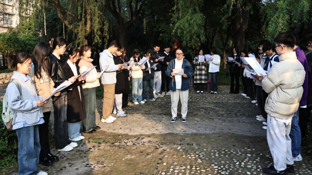 近日,学院2021、2023级本科生党支部在砚池旁开展学习习近平总书记《论教育》专题特色学习会,支部全体党员参加。