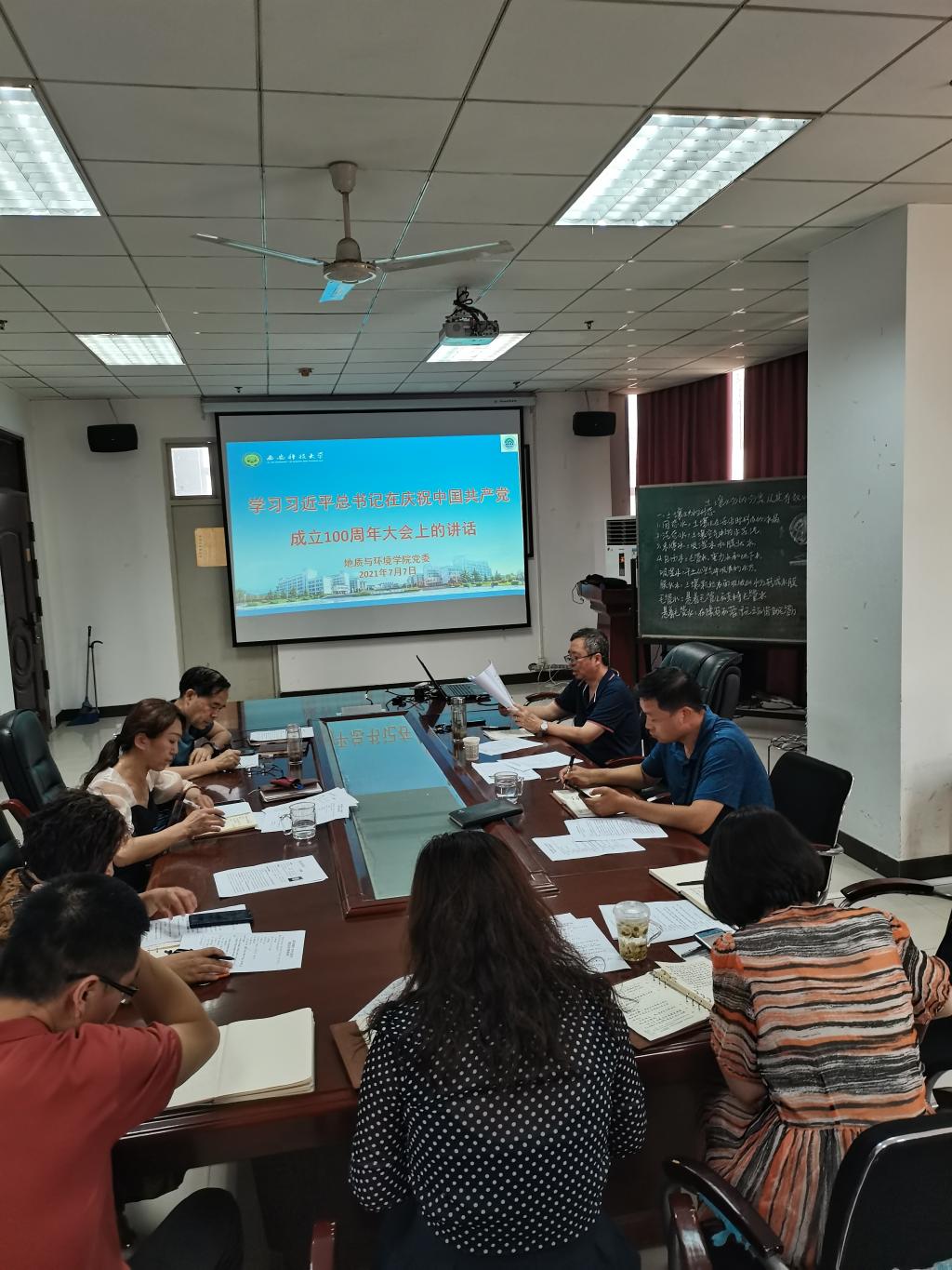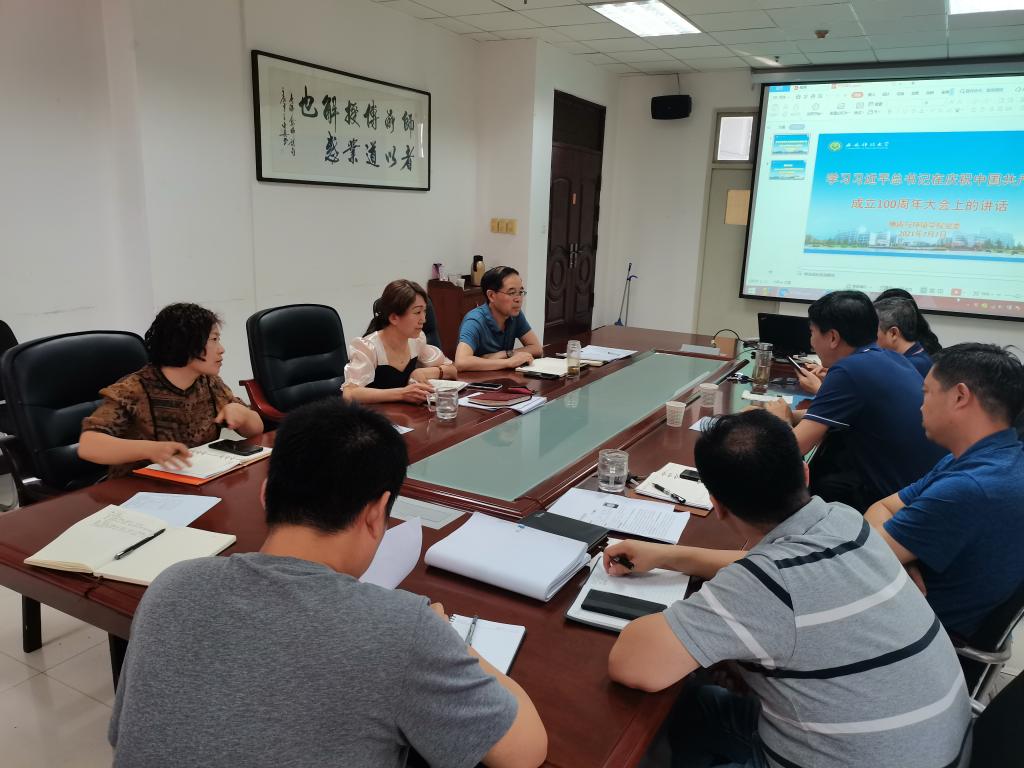 7月7日下午,地环学院在雁塔校区学院会议室召开党委中心组学习暨党史学习教育会议,学习习近平总书记在庆祝中国共产党成立100周年大会上的重要讲话并进行专题交流研讨,学院中心组成员参加会议。会议由党委书记赵雪萍主持。