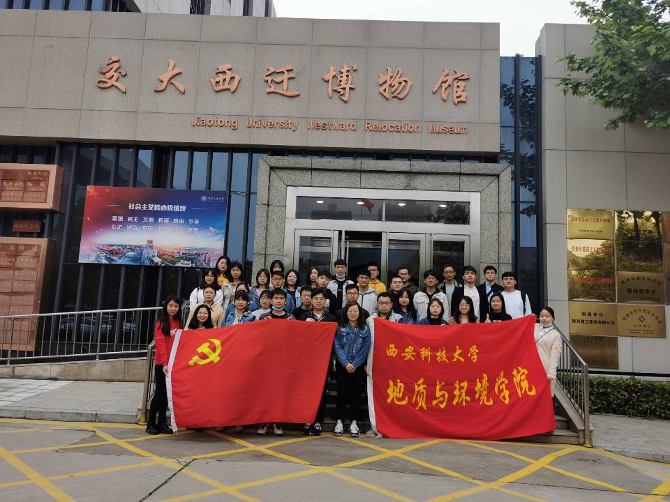 为扎实推进党史学习教育,认真贯彻习近平总书记来陕考察重要讲话,迎接建党100周年。在习近平总书记来陕考察一周年之际,4月26日,地质与环境学院组织研究生及本科生党员代表,走进了西安交通大学的西迁博物馆,聆听西迁故事,切实感受“胸怀大局、无私奉献、弘扬传统、艰苦创业”的西迁精神。