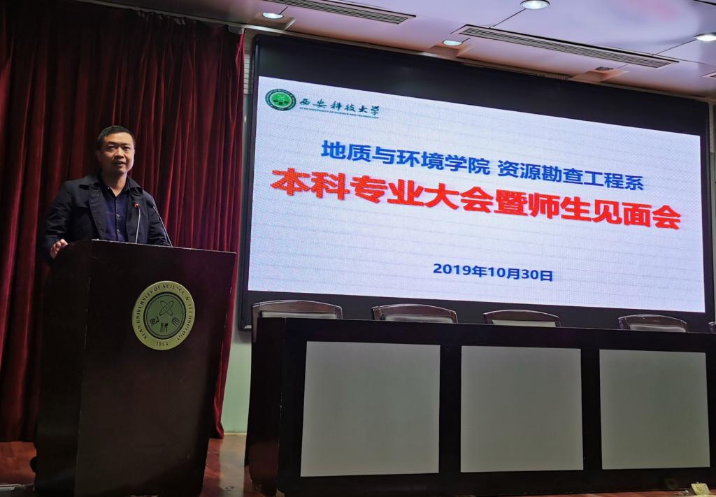 10月30日下午2点,地环学院资源勘查工程系在临潼校区图书馆二楼报告厅开展本科专业大会,目的为“结对子、促交流、育栋梁”,使学生更了解专业、努力学习。本次“不忘初心,牢记使命”主题联合特色活动由系主任陈应涛主持,地环学院副院长孙学阳、教务办主任刘瑾及资源勘查工程系党员及入党积极分子参加了活动,学生则包括资源勘查工程和地质工程(卓越)两个专业全体学生。