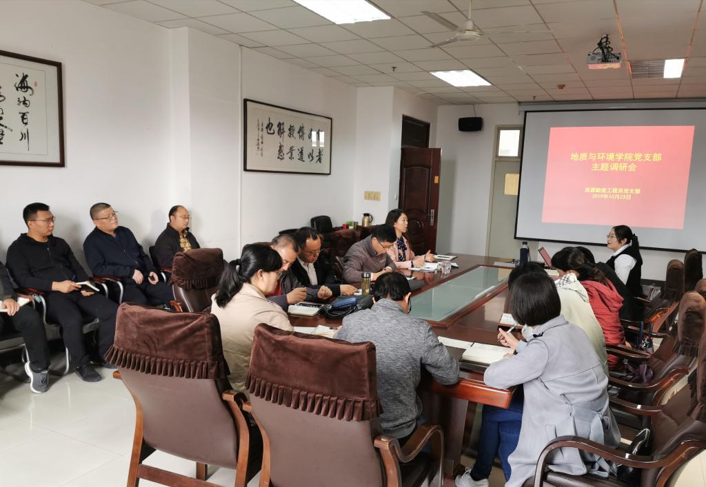 10月23日下午2点,地环学院资源勘查工程系党支部在雁塔校区6层会议室开展“不忘初心,牢记使命”主题研讨会。地环学院赵雪萍书记、王文莉副书记出席并传达校主题教育会议精神。资源勘查工程系党支部全体党员参加了学习活动。并围绕“青年教师担当意识薄弱原因及提升对策”、“地质类专业招生吸引稳定提升对策”、“对领导班子存在问题及改进作风、工作的问题”、“对学院建设发展意见”等主题开展了研讨。通过主题研讨、排查问题、积极整改,加强交流沟通,增强了个人的奉献意识和起到模范带头作用的决心,增强了立德树人的使命感,激发了努力干事业的积极性,在今后的工作中,为学校“双一流”建设努力奋斗。