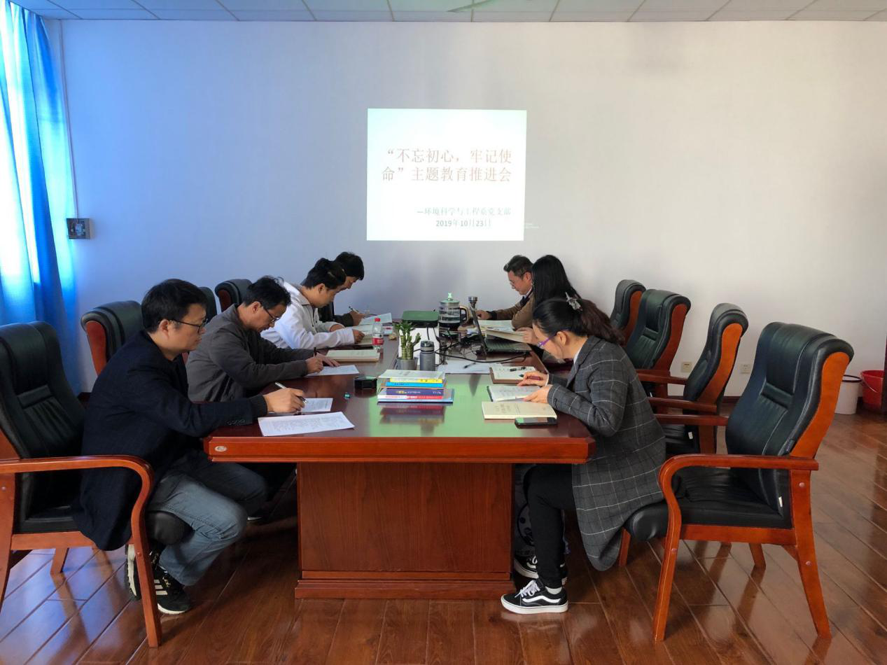 2019年9月23日下午14:00,地环学院环境科学与工程系党支部在雁塔校区行政楼1303开展了“不忘初心 牢记使命 ”主题党日专题学习应知应会活动,支部书记贺艳带领全体党员学习了主题教育的总要求、重点措施、四个意识、四个自信、两个维护等内容;针对调研题目,组织党员以座谈会的形式探讨了“青年教师担当意识薄弱的原因及对策”,并征集了各位党员对学院建设发展的意见和建议,大家踊跃发言,气氛热烈。会后支部组织全体党员观看了电影《我和我的祖国》,以加强支部党员的党性修养。
