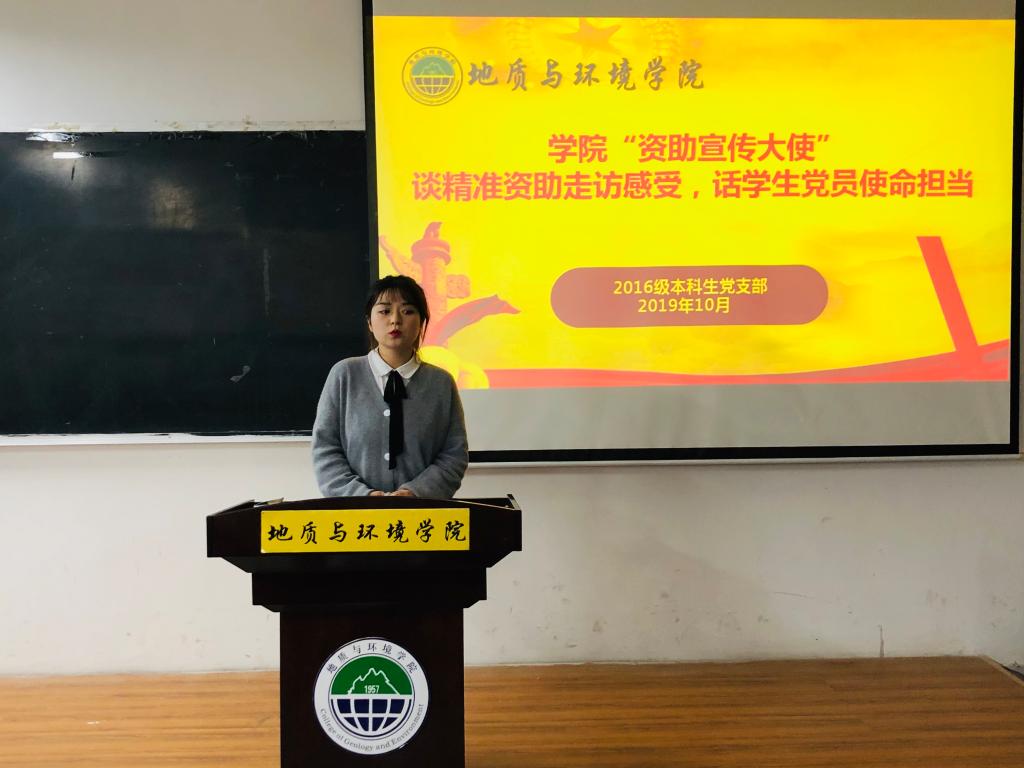 地环2016级本科生党支部集中开展学院“资助宣传大使”谈精准资助走访感受,话学生党员使命担当座谈会