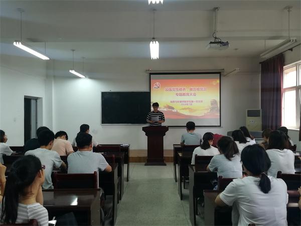 7月13日上午,地环学院学生第一党支部在临潼校区骊山校园11教报告厅召开“加强党性修养,做合格党员”专题教育大会,会议由支部组织委员余小涛主持。会上,党员之间开展批评与自我批评,帮助大家查摆问题,通过“自重、自省、自警、自励”,加强党性修养、提高自我素质。通过此项活动帮助党员进行自我教育、自我改造和自我完善,锤炼党性,争做新时期优秀党员。
