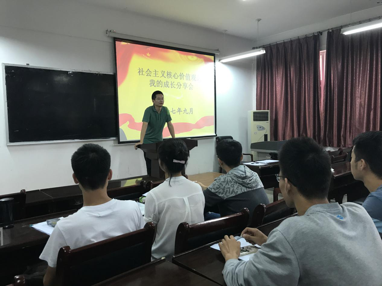 另讯,929日和1110日,支部书记林伟分别为支部分享了《社会主义核心价值观——我的成长》党课和发展对象专题培训党课,通过以上活动,支部党员及入党积极分子受到了良好教育,纷纷表示将在学习生活中发挥党员先锋模范作用,将社会主义核心价值观和十九大报告融入到日常学习工作中。