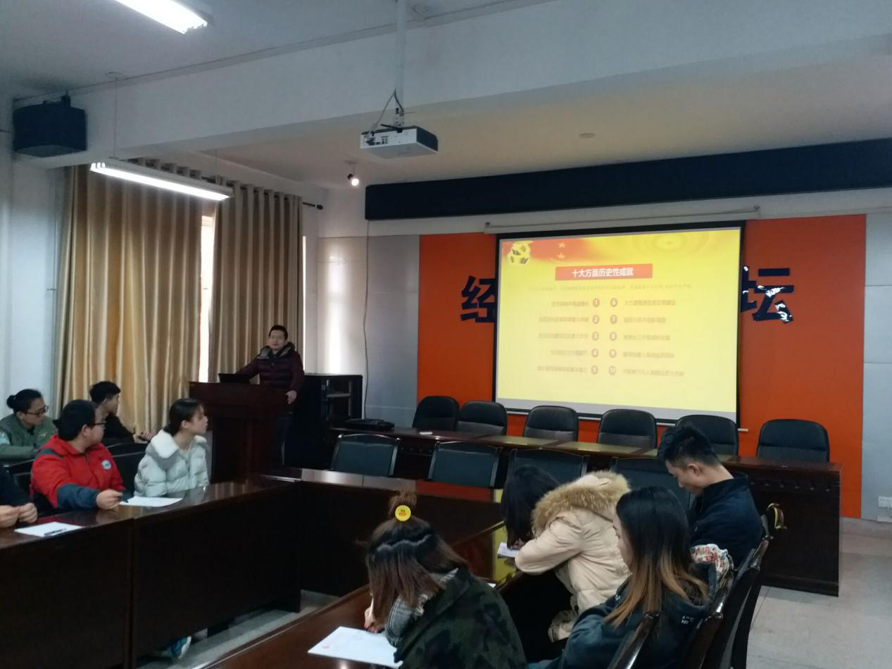 1219日,地环学院学生第一党支部书记林伟在临潼校区骊山校园11317为支部党员及入党积极分子做了题为《十九大报告解读》的专题党课,他分别从十九大内容、模范党员作用发挥等方面展开,与会人员受益匪浅。