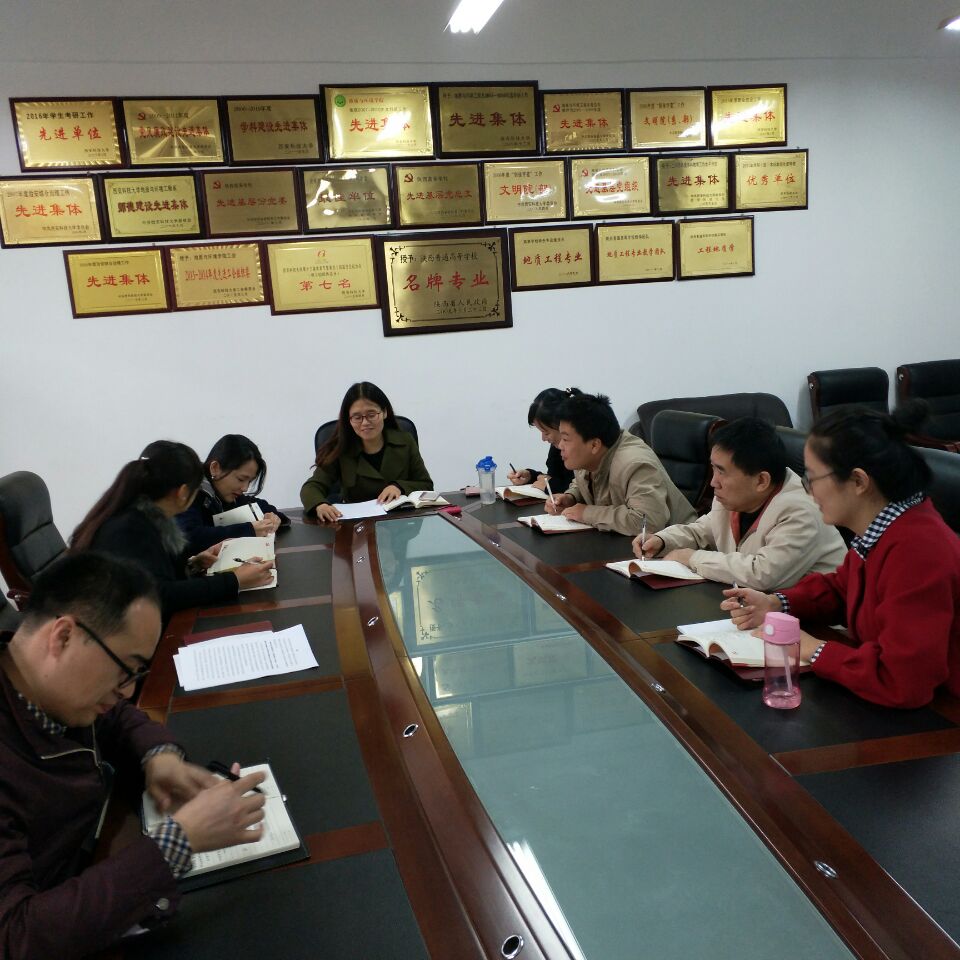 会上,支部书记刘永娟传达了《陕西省高等学校院系级党组织工作规程(试行)》和《陕西省党内关爱帮扶专项资金管理办法(试行)》等文件,并就近期“高校党务干部能力提升”专题网络培训、关于开展基层党建重点任务推进落实情况自查工作作了安排。会上,大家学习了《陕西省高等学校院系级党组织工作规程(试行)》、《陕西省党内关爱帮扶专项资金管理办法(试行)》、《最新版党章》、《十九大报告解读》等学习材料。会议指出,全体党员要深刻领会十九大召开的伟大意义,迅速掀起学习十九大精神的热潮。以学习贯彻党的十九大精神为契机,紧密联系实际工作,不断创新思路,锐意进取,勇做新时代的排头兵。