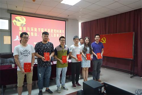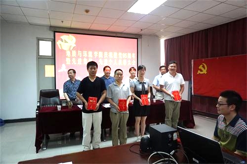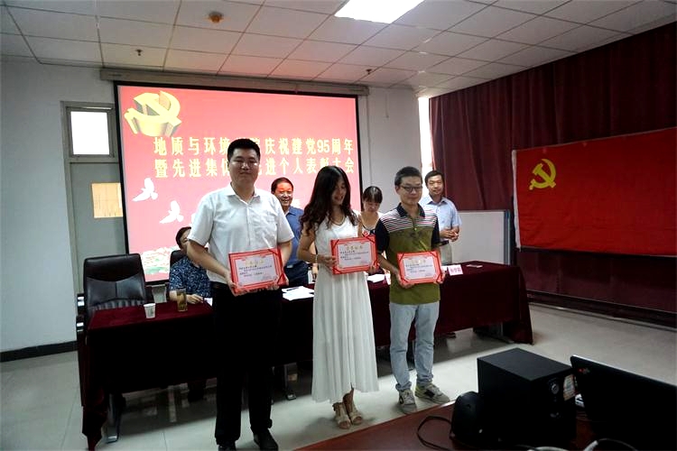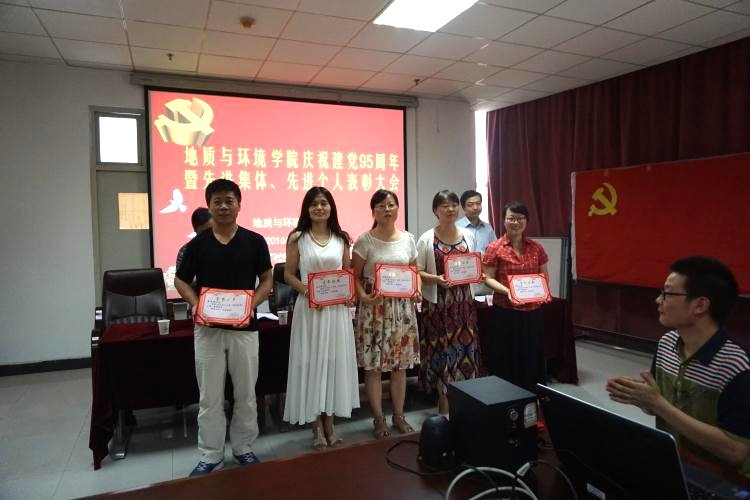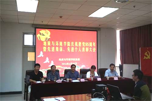 6月30日下午,在庄严的国歌声中,地质与环境学院庆祝建党95周年暨先进集体、先进个人表彰大会隆重召开。院党委书记丁正生作了《坚定思想,牢记宗旨,增强意识,做合格党员》主题讲话。院党委副书记王文莉主持会议。副院长唐胜利、孙学阳参加了会议。