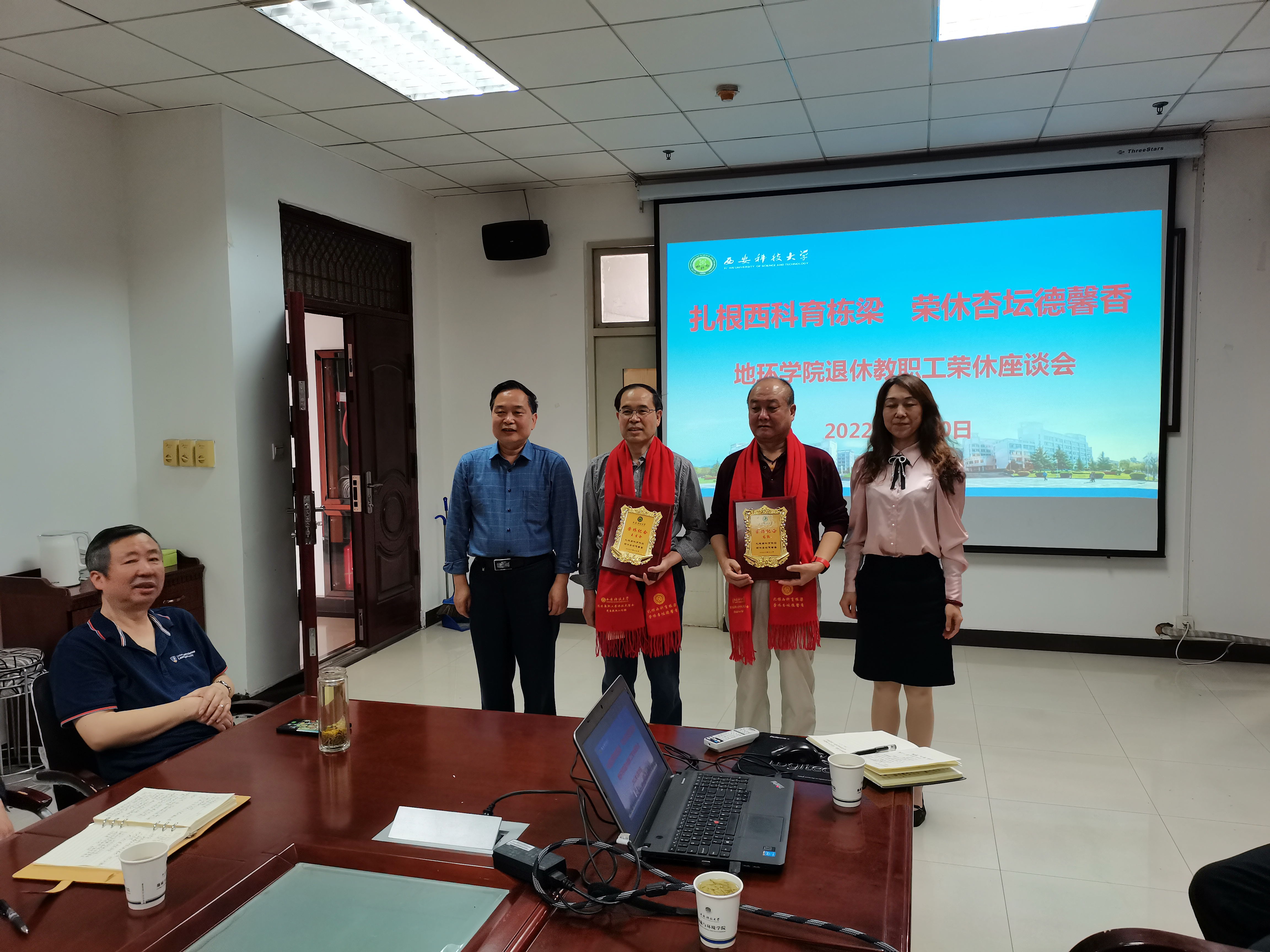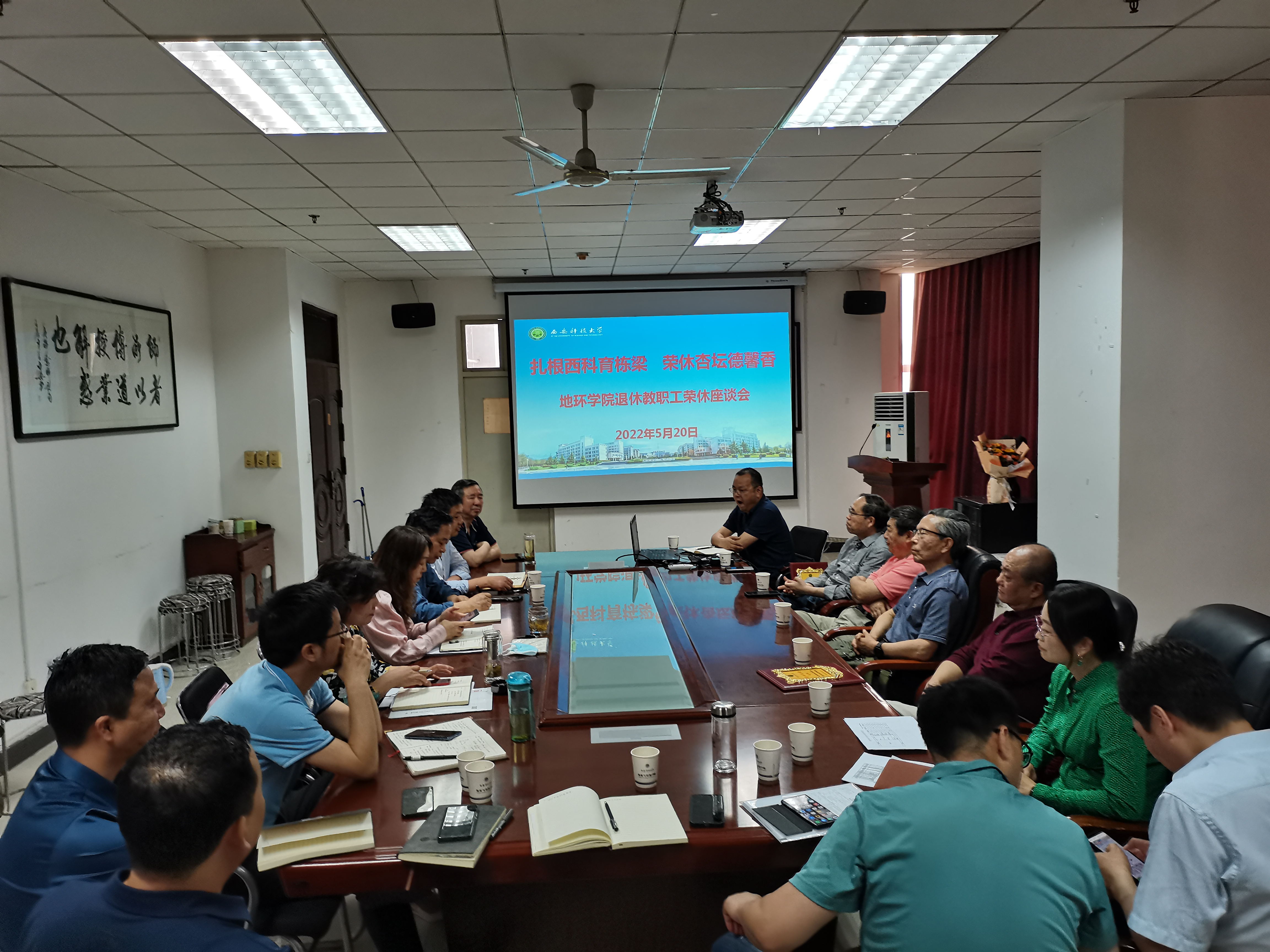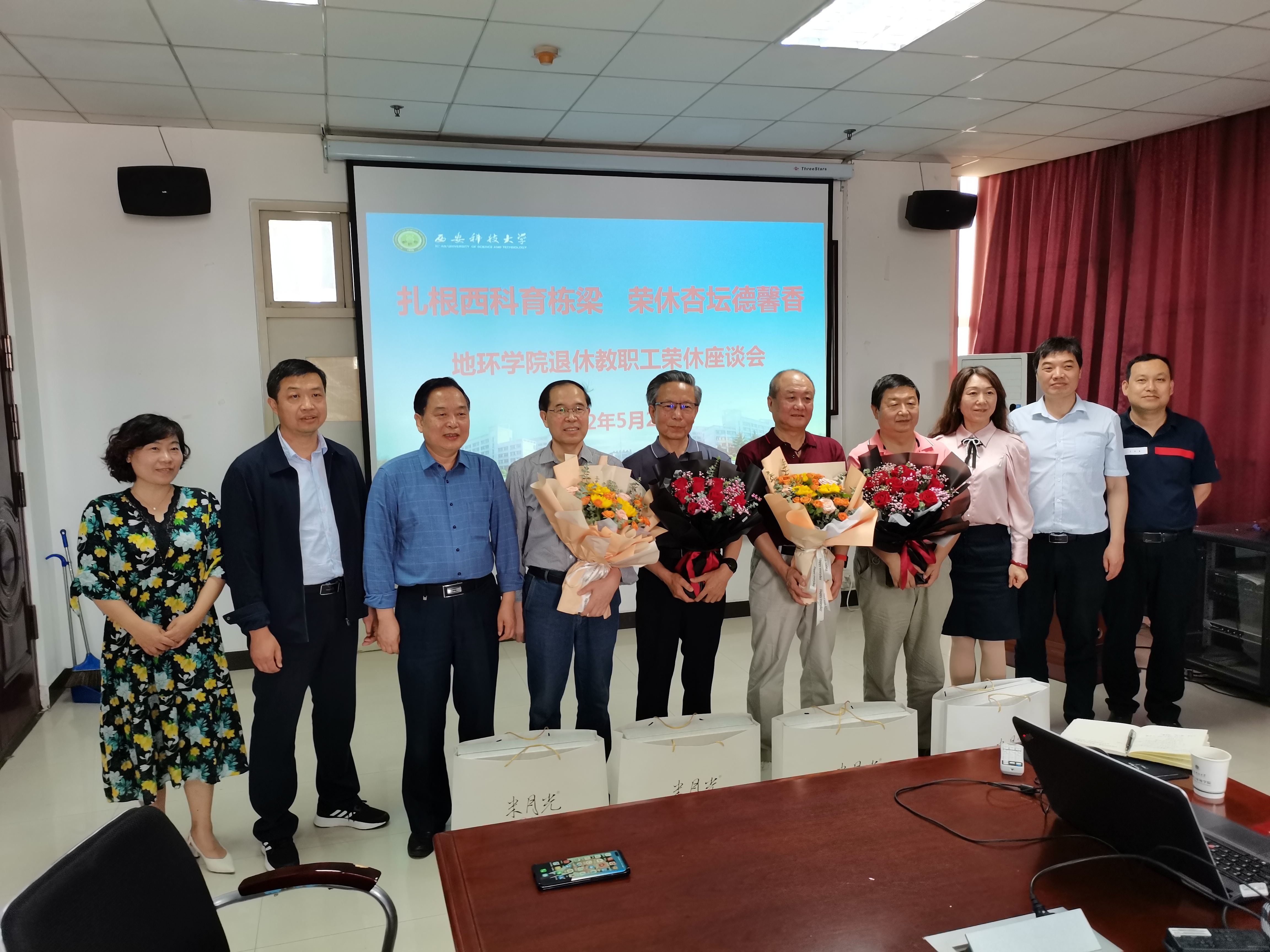 5月20日,地环学院在雁塔校区学院会议室举办退休教职工夏玉成、王生全、张志沛、高凯老师荣休座谈会。学院党政班子成员、相关系室负责人、工会主席及教职工代表参加了会议。会议由党委书记赵雪萍主持。