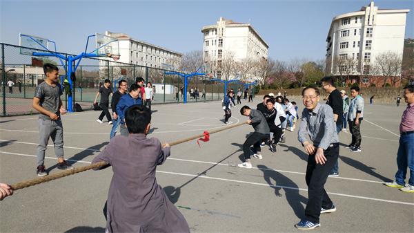 3月29日下午,地环学院在临潼校区骊山校园东篮球场举办2019年师生趣味联谊活动,院长王生全、党委副书记王文莉、部分教工及各年级无课学生参加活动。联谊活动包括拔河比赛、十人十一足、保护气球等项目,师生们参与度高,活动其乐融融。通过活动,加强了学院师生之间的交流与互动,加深师生感情,彰显了班级学生的团队合作精神和班级凝聚力。