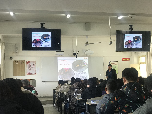 艾庆元工程师以《排水管道施工》为题,从管道施工分类、管道施工安全及应急处理、明开槽施工要点三个方面入手,对管道施工过程中的技术要领及规范规程进行了详细的介绍。本次授课将课本中的基本理论与实际工程相结合,拓宽了学生的专业技能,课堂气氛活跃,授课效果良好。