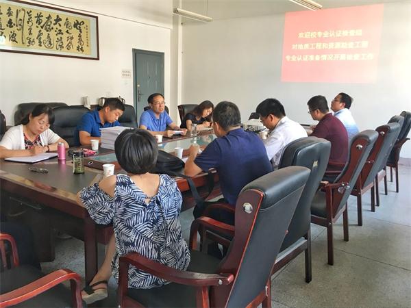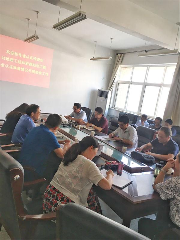 8月31日下午两时,教务处张传伟处长,实管处胡发泉处长带领学校专业认证检查工作组莅临我院对地质工程和资源勘查工程专业认证准备情况开展检查工作,我院领导班子、两专业系主任、实验室主任等相关工作人员参加了此次检查。 学院领导班子、专业负责人及参加专业认证的相关人就各自负责情况向检查组进行了汇报,并将需要学校层面需要协调的部分逐一说明。校检查组对我院准备工作做出了高度肯定,也对下一步需要努力的方向提出了更高的要求。