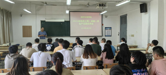 8月26日,在临潼校区骊山校园11教503室召开地质工程专业2021级地质工程(卓越)班生产实践活动动员大会。学院副院长赵洲、地质工程系相关人员、生产实践指导教师及2021级地质工程(卓越)班本科生参加了动员会。