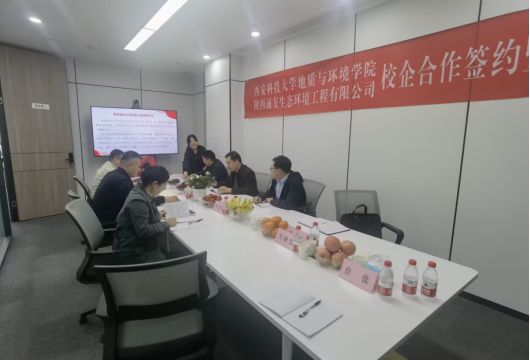 为扎实推进毕业生就业工作,深入调研企业人才需求,促进校企深度合作。4月25日,学院院长孙学阳带领资源勘查工程系党支部书记陈跃、地质工程系副主任唐皓和地下水科学与工程系副主任路拓前往陕西诚友生态环境工程有限公司走访调研。陕西诚友生态环境工程有限公司总经理桑宏斌、副总经理席国强及各部门主要领导出席座谈会。双方就学生就业、学生联合培养、校企科研合作等方面进行了深入交流和探讨。院长孙学阳与总经理桑宏斌签署了校企合作协议,并进行了揭牌。