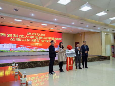 为深化校企交流合作,拓宽毕业生就业渠道及搭建学术型人才培养的新平台。3月8日-3月9日,学院党委书记赵雪萍、院长孙学阳、副院长陈应涛及资源勘查工程系、地下水科学与工程系相关负责人一行先后走访了陕煤陕西澄合矿业有限公司、澄合山阳煤矿公司等单位,对接企业需求,深化产学研合作,深入推进访企拓岗,看望慰问校友,并与矿业公司山阳煤矿举行了产教融合实践基地揭牌仪式。矿业公司副总经理、总工程师刘朝阳、人力资源部部长马哲俊、山阳煤矿党委书记陈平、矿长张富魁、总工程师肖俊及科技部、生产部等相关负责人出席了相关活动,矿业公司地质测量部部长王峰主持了相关活动。