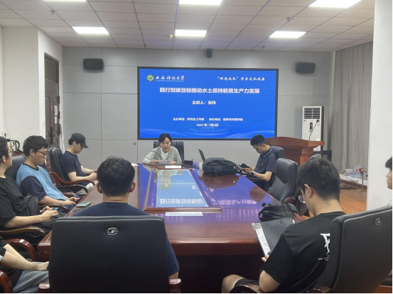 7月8日下午,张祎教授应邀做客我校“研途成长—导学思政’沙龙”活动,作了主题为《践行双碳目标推动水土保持新质生产力发展》的学术报告。报告会由党委研究生工作部主办,地质与环境学院承办,学院辅导员汪莹老师主持,全院30余名研究生聆听了报告。