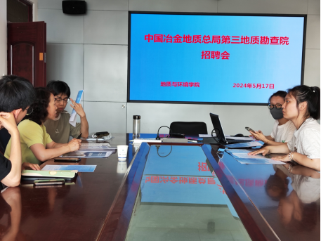 5月17日,学院为促进研究生就业工作,邀请中国冶金地质总局第三地质勘察院在雁塔校区煤科大楼613会议室举办研究生专场招聘会,研究生辅导员以及相关专业2024届毕业生参加了招聘会。