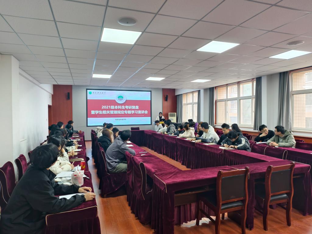 3月3日,学院2021级本科生在骊山校园召开“考研复盘暨学生相关管理规定专题学习宣讲会”。毕业班学生、学生党员及班干部参会,21级辅导员陈艳丽主持。