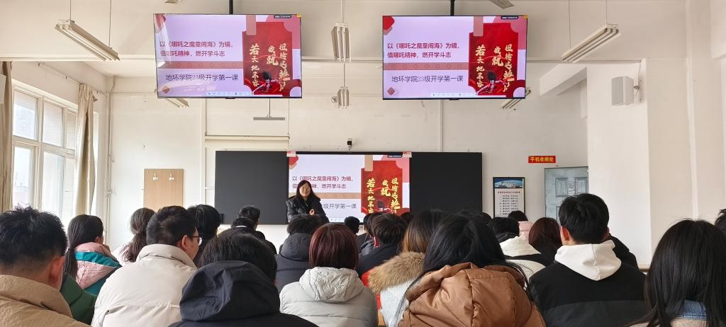 2月25日,学院召开2023级本科生“开学第一课”暨安全教育大会。本次大会以“借哪吒精神·燃开学斗志”为主题,激励同学们以饱满的热情开启新学期,辅导员韩蕊主持会议。
