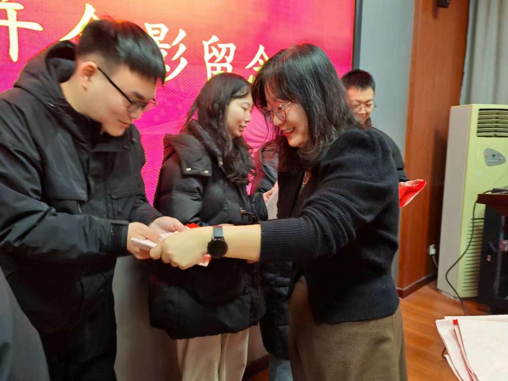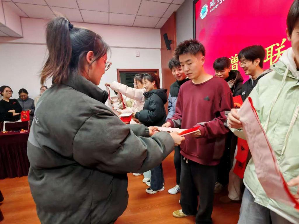 活动现场,气氛热烈而温馨。与会老师为国家励志奖学金获得者颁发喜报,并向受助同学们赠送了暖心春联。这份特别的礼物不仅传递了新年的祝福,更让同学们感受到了学校和学院的关怀与温暖。