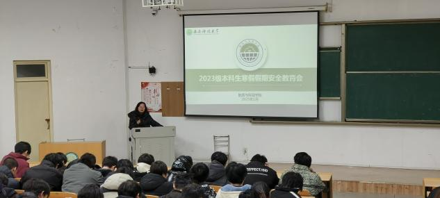 1月6日,为扎实推进2025年寒假安全教育管理工作,学院于骊山校园9教105室召开2023级本科生寒假安全教育大会,辅导员韩蕊主持,23级全体学生参会。