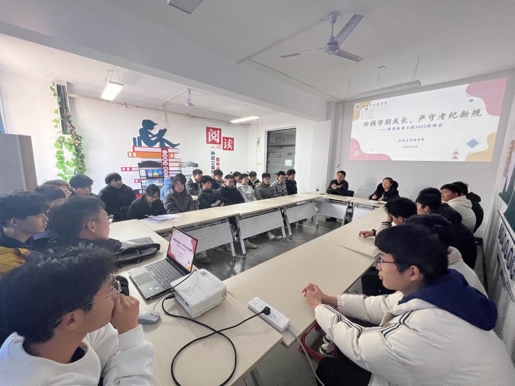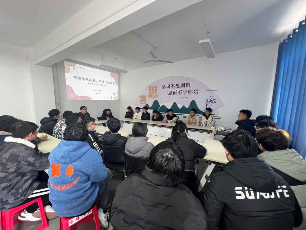 12月16日,资源勘查工程2402班班主任赵晓辰老师深入“一站式”学生社区,召开“回顾学期成长,严守考纪新规”主题班会。资源勘查工程2402班全体同学参会,辅导员李琳主持。