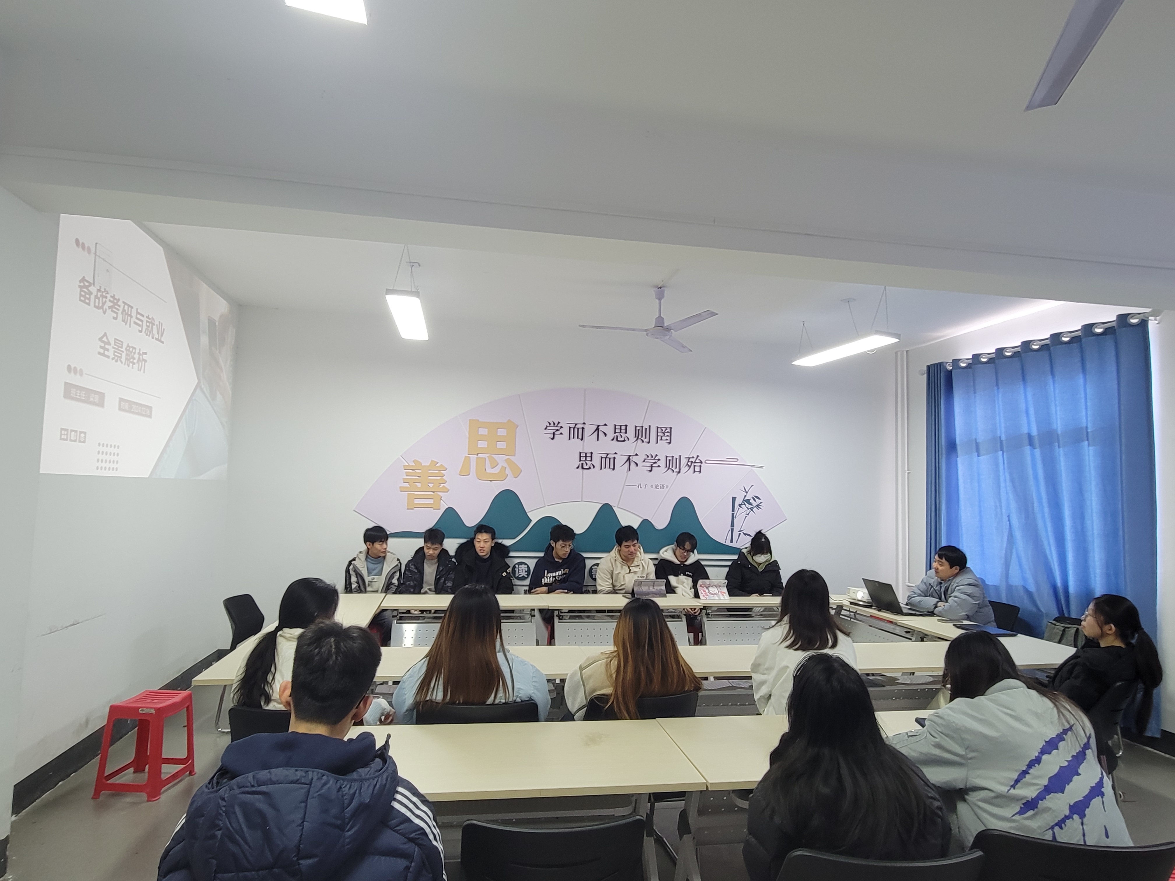 12月16日,环境2101、2102班班主任梁明于地环学院一站式学生社区组织开展了备战考研与就业全景解析主题班会。