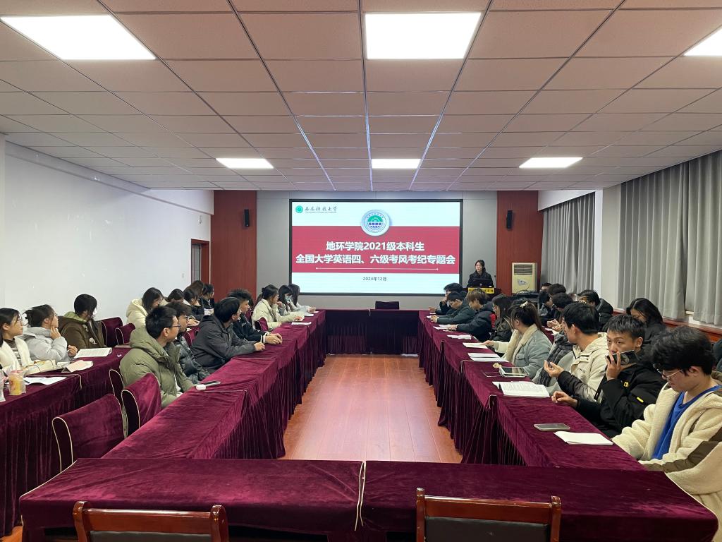 为扎实做好大学生四六级考试工作,提高学生诚信考试意识,进一步规范考试管理、严肃考风考纪、维护考试的公平公正、促进优良学风的养成。近日,学院2021级本科生召开英语四六级考风考纪专题教育会。2021级四六级考生代表参会,2021级辅导员陈艳丽主持会议。