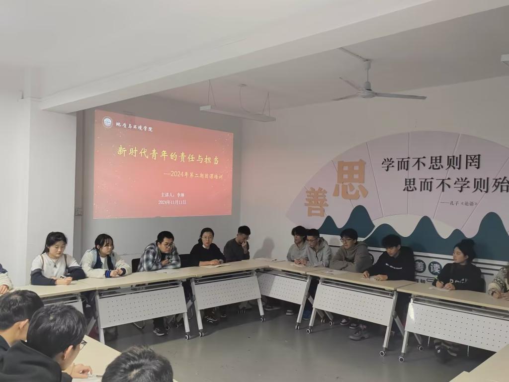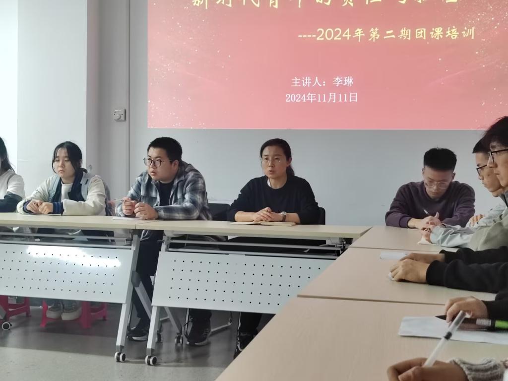 11月11日晚,学院在“一站式”学生社区组织开展了“新时代青年的责任与担当”为主题的团课培训,学院团委书记李琳主讲,28名入团积极分子参加学习。