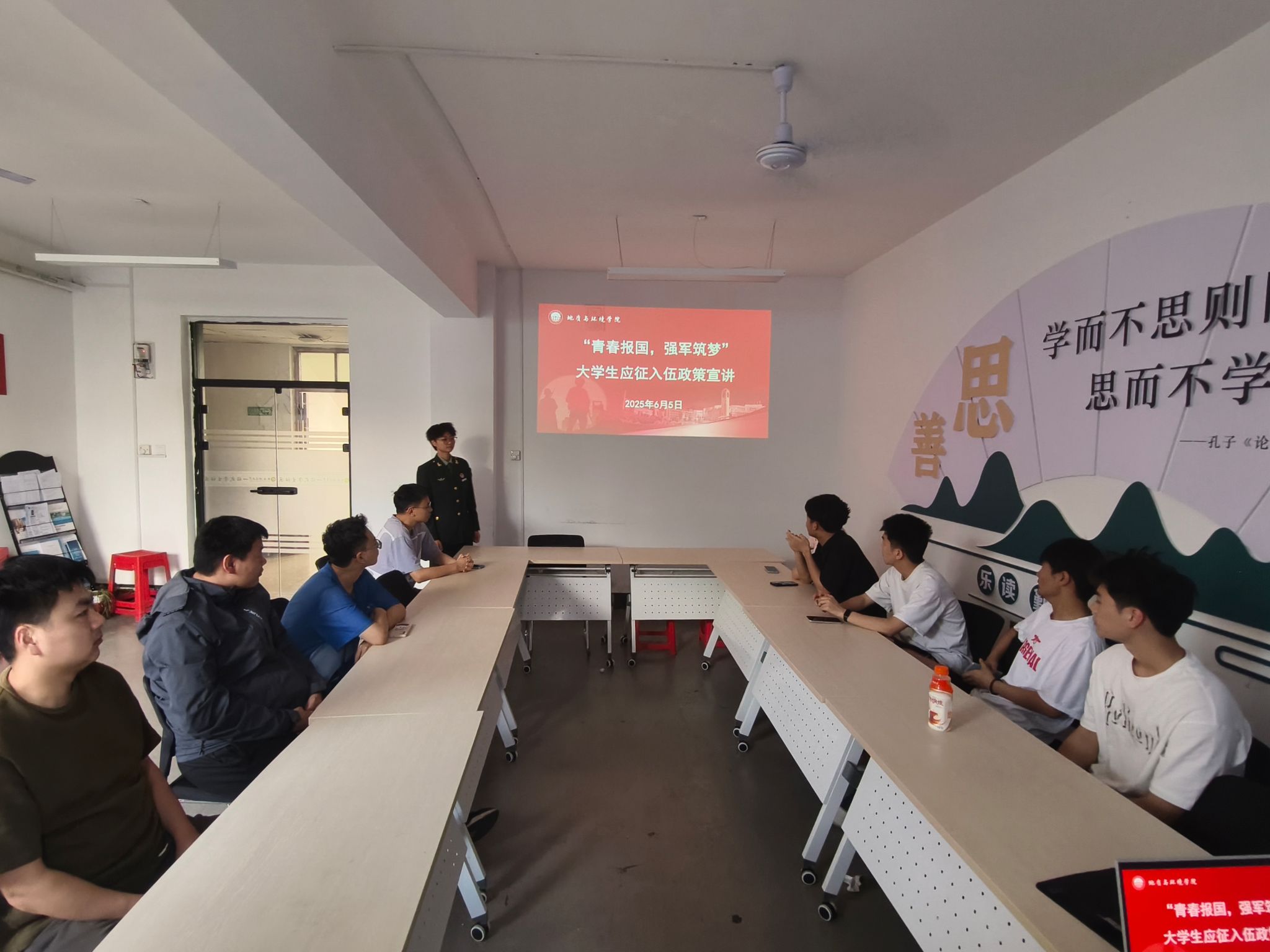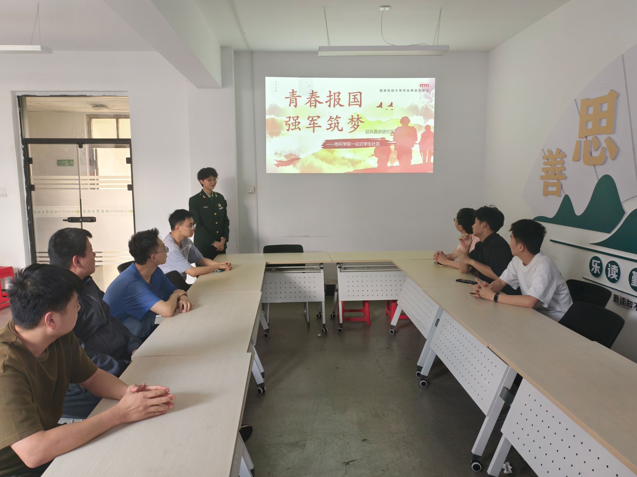 6月5日,学院在“一站式”学生社区开展“青春报国 强军筑梦”应征入伍政策宣讲活动,各年级有入伍意愿的大学生参加,活动邀请退役大学生士兵张雨晨、杨紫砚进行入伍政策宣讲。