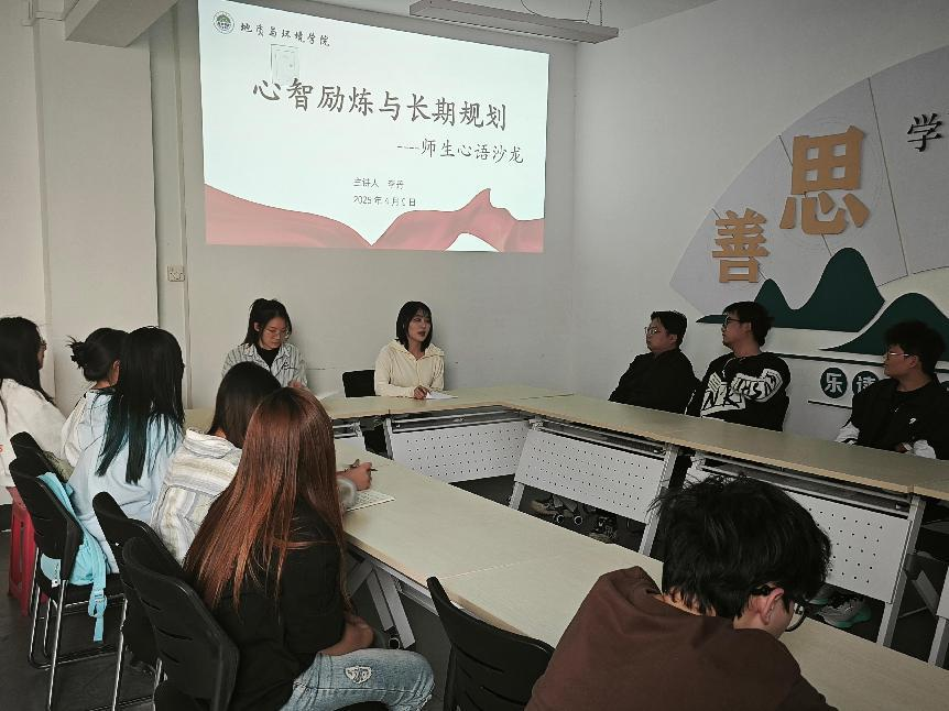 近日,地环学院师生心语沙龙活动在“一站式”学生社区举行。本次活动邀请李丹老师作主题为“心智历练与长期规划”的分享,2021级学生代表参加活动,学院2021级辅导员陈艳丽主持分享会。