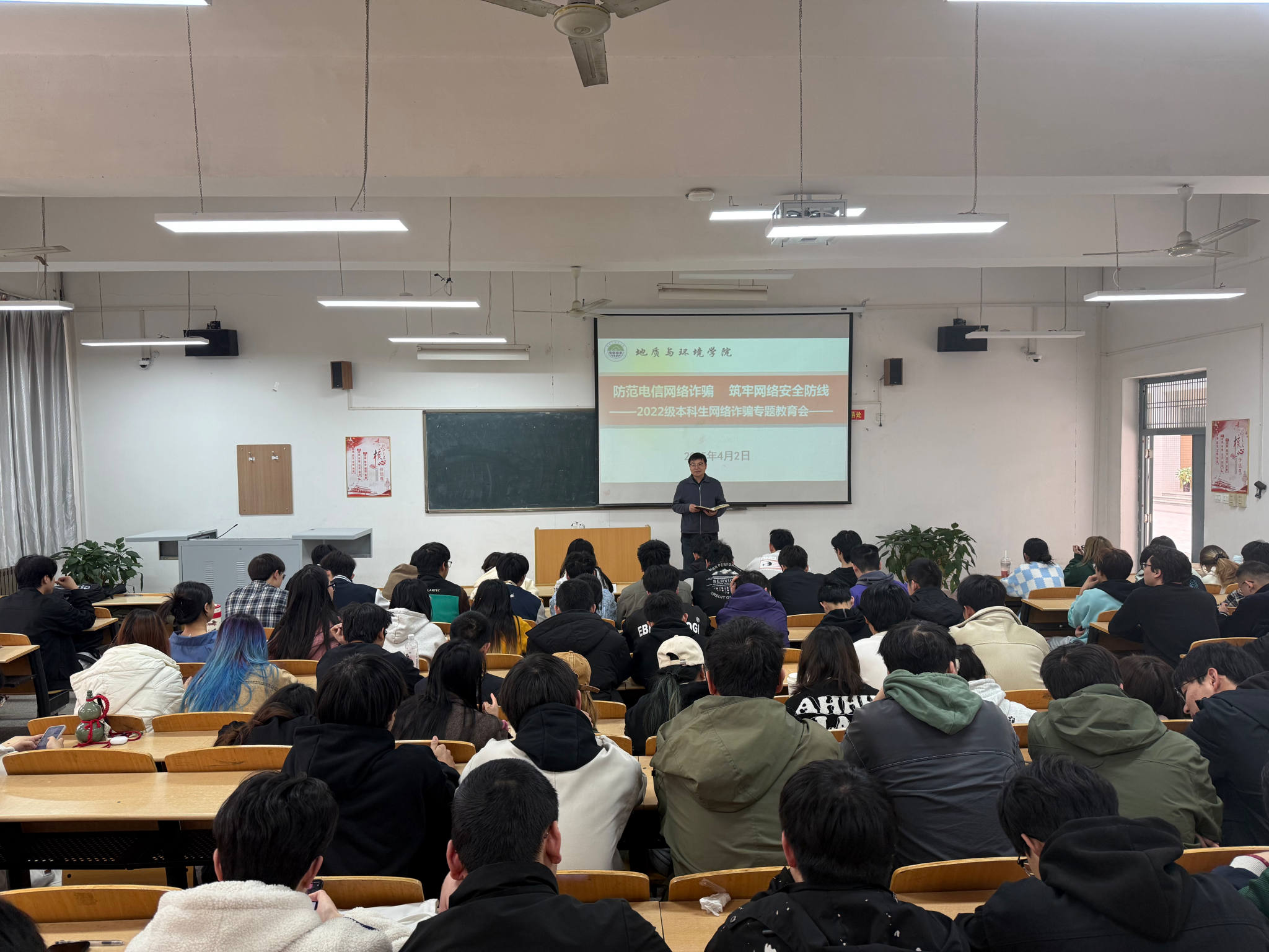 4月2日,学院2022级本科生在骊山校园9教107召开防范网络电信诈骗专题教育会,2022级全体本科生参会,会议由带班辅导员余小涛主持。