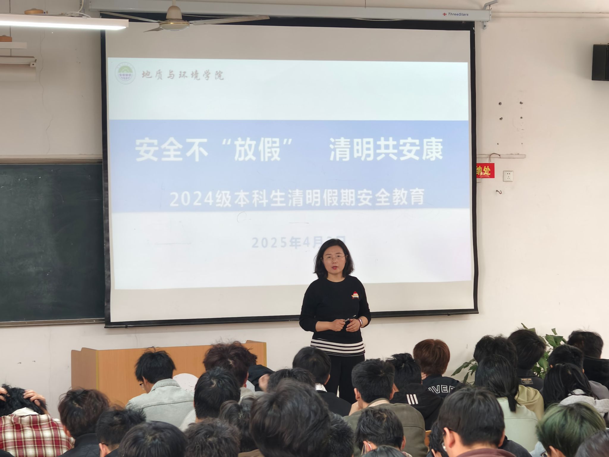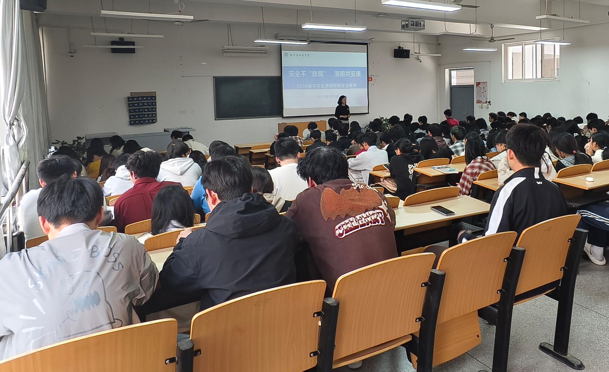 为切实保障2024 级本科生清明节假期安全,提高学生的安全意识。4月2日-3日,学院在“一站式”社区、9教109教室,组织召开以“安全不‘放假’,清明共安康”为主题的安全教育会,2024级全体本科生参会,学院学工办主任李琳主持会议。
