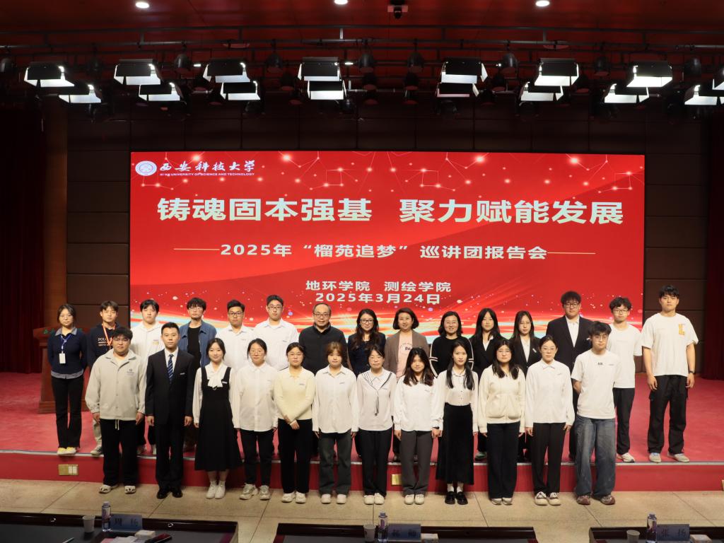 为落实立德树人根本任务,充分发挥奖助学金育人功能,3月24日,学院和测绘学院联合在骊山校园煤炭科技中心一层报告厅举办了“铸魂固本强基,聚力赋能发展”2025年资助育人“榴苑追梦”巡讲团报告会。测绘学院党委副书记郝卿,校学生资助管理中心主任周杨,学院学工办主任、团委书记李琳,测绘学院学生资助工作负责老师张扬及两个学院本科生代表400余人参加报告会。