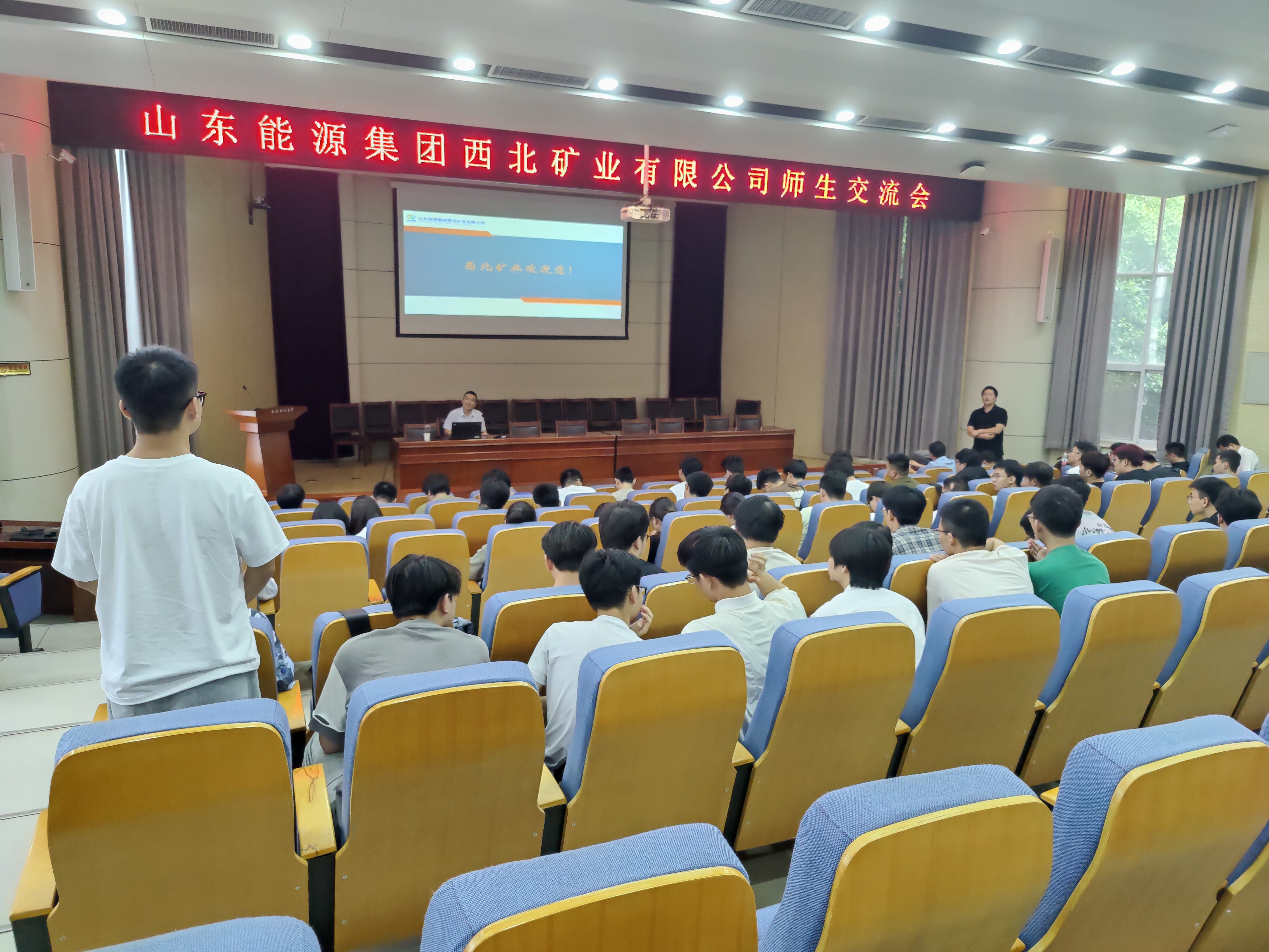 刘训明对山东能源集团人力资源部吴刚处长一行的来访表示热烈欢迎,诚挚感谢山东能源集团在就业、科研合作等方面为学院提供的支持帮助,要求参会学生认真聆听宣讲,结合自身情况,尽早确定就业目标并为就业早做准备。吴刚介绍了山东能源集团,特别是集团西北矿业公司的基本情况,详细讲解了公司的招聘要求、员工待遇及发展前景等,并结合企业情况,为全体学生进行了就业指导,鼓励大学生们要提升格局,确立人生目标,找准前进方向。宣讲会上,与会学生积极提问,吴刚耐心解答,使在座的每一位学生都受益匪浅。宣讲会现场,已有部分生达成就业意向。