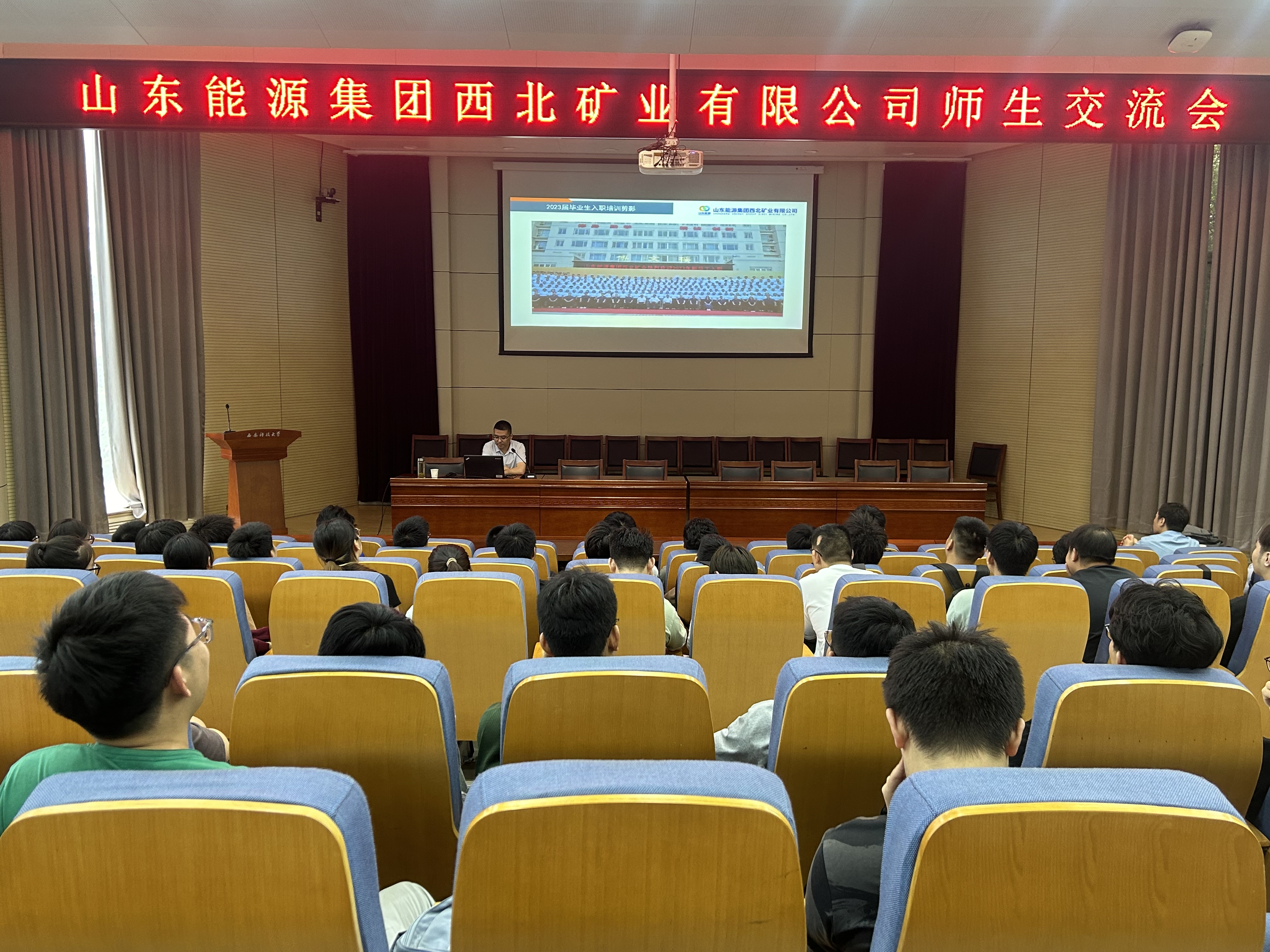 7月3日,在雁塔校区主楼报告厅,地环学院邀请山东能源集团来校开展就业专题宣讲会,学院副院长陈应涛,地下水科学与工程系主任牛超、资源勘查工程系主任彭涛、副主任陈跃,毕业班辅导员及教师代表以及2021级部分专业本科生与2020级研究生参加会议。会议由学院党委副书记刘训明主持。