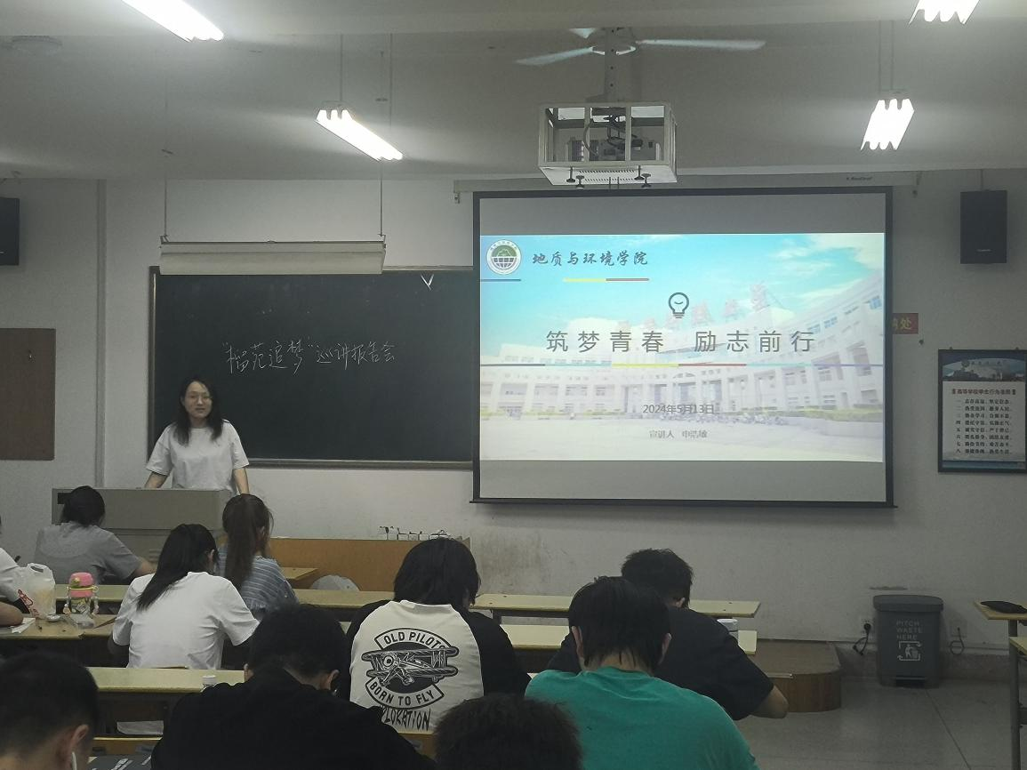 4月29日晚,地质与环境学院在煤炭中心二楼报告厅举办2024年“榴苑追梦”巡讲团成员聘任仪式暨首场报告会。学工部副部(处)长薛建航、学生资助管理中心主任周杨,地环学院党委副书记刘训明、辅导员及2023级本科新生参加活动。