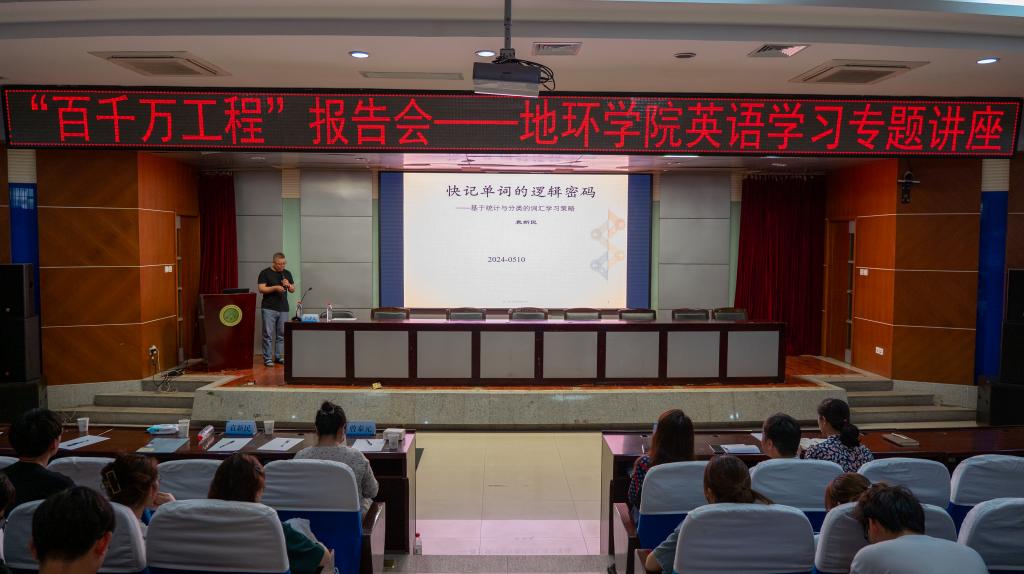 5月10日,学院在临潼校区图书馆二楼报告厅开展“百千万工程”报告会——英语学习专题讲座,邀请曾泰元教授与袁新民副教授作专题辅导报告。院党委副书记刘训明主持报告会,院党委书记赵雪萍、副院长毕银丽、各年级辅导员以及地环学院、人外学院学生代表200余人参会。
